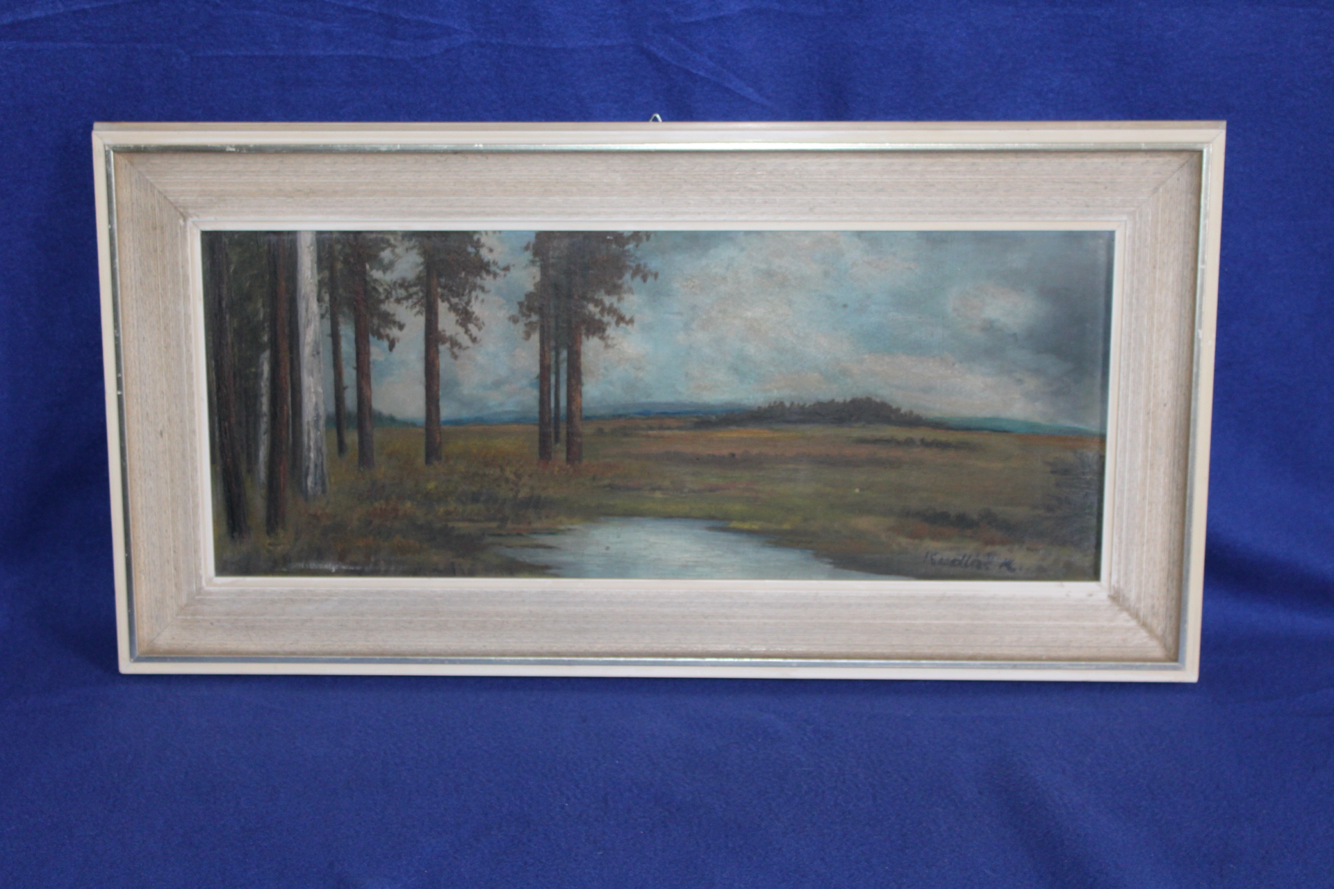 Signovaný obraz krajiny od K. Kudláče, jedná se o olej na kartonu. Rozměr rámu 74 37 cm.