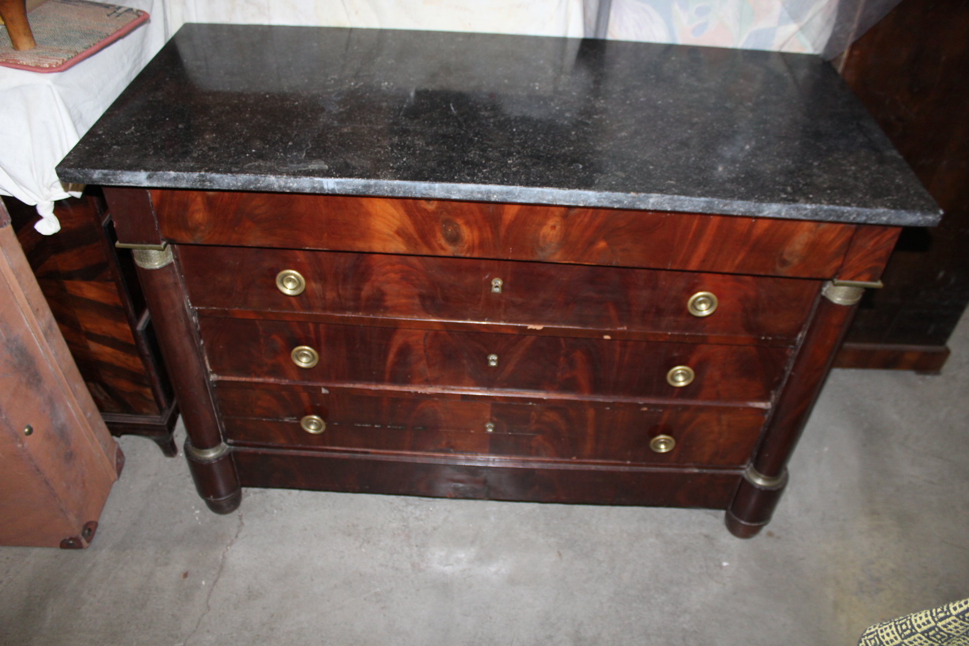 Komoda je pevná, čistá, má mosazné kování.