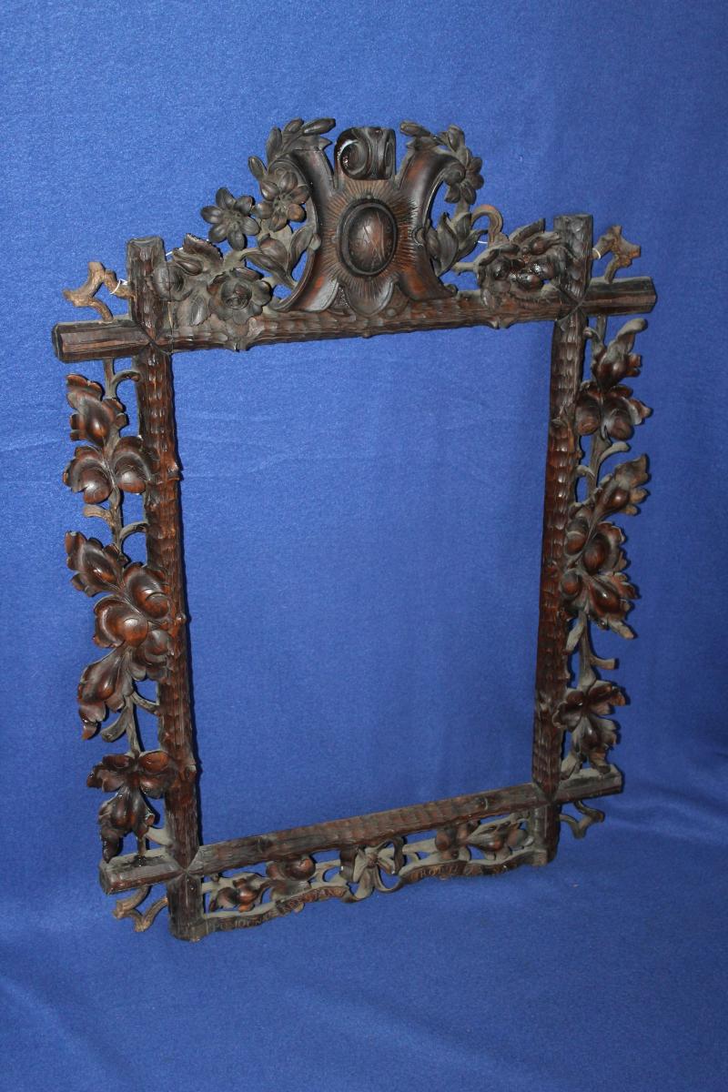 Starožitný rám v krásném stavu, bohatě vyřezávaný, na spodní části nápis viz foto.